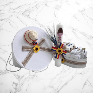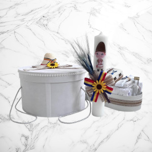 Alege un set de botez tradițional, cu design autentic românesc, perfect pentru ceremonia de creștinare a micuțului tău. Setul conține o lumânare decorată cu motive populare și un trusou complet, realizat din materiale de înaltă calitate, cu dantelă și broderii fine și o cutie pentru hăinuțe.👶✨