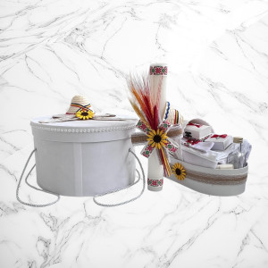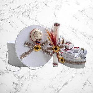 Alege un set de botez tradițional, cu design autentic românesc, perfect pentru ceremonia de creștinare a micuțului tău. Setul conține o lumânare decorată cu motive populare și un trusou complet, realizat din materiale de înaltă calitate, cu dantelă și broderii fine și o cutie pentru hăinuțe.👶✨