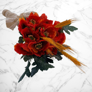 1 buchet de mireasă cu maci, realizat din flori textile
