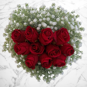 Florile sunt realizate din diverse țesături, precum mătase artificială și alte materiale textile de calitate, atent lucrate pentru a reda un aspect natural, elegant și o durabilitate crescută în timp.