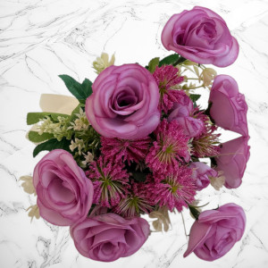 1 buchet de mireasă cu trandafiri lila, realizat din flori textile