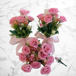 Acest set de nuntă cu trandafiri mici roz impresionează prin delicatețe, romantism și eleganță subtilă, fiind alegerea ideală pentru mirii care își doresc un decor luminos și armonios. Nuanțele pastelate de roz simbolizează iubirea pură, tandrețea și începuturile pline de emoție.