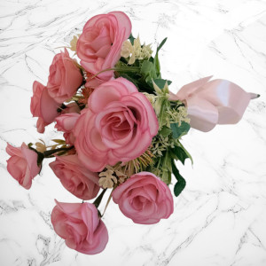 1 buchet de mireasă cu trandafiri roz, realizat din flori textile