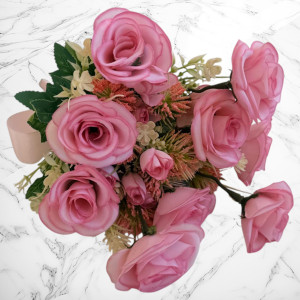 Florile sunt realizate din diverse țesături, precum mătase artificială și alte materiale textile de calitate, atent lucrate pentru a reda un aspect natural, elegant și o rezistență crescută în timp.