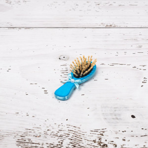 - perie par de 12 cm lungime cu decor banda bleu si fundita cu perluta in mijloc.