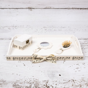 Vopseaua alba folosita pentru a decora produsele este non-toxica si modelul note muzicale este sugestiv pentru o familie de melomani.