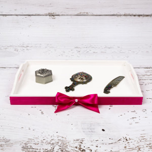 Accesoriile metalice, alaturi de tavita din lemn reprezinta un cadou deosebit din partea nasei pentru finuta ei.