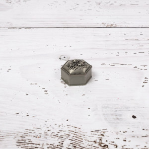 Cutiuta metalica Prima suvita cu forma hexagon: 6 x 5 x 2,5 cm.