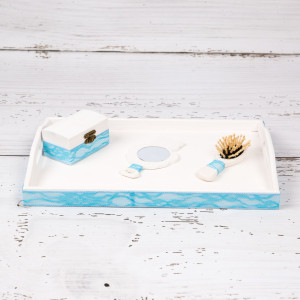 Ulterior, parul copilului va fi pastrat in cutiuta pentru prima suvita, in timp ce tava din lemn, peria de par si oglinda sunt pastrate ca amintire.