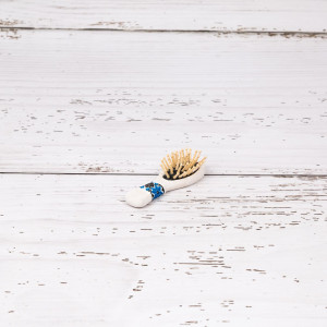 Setul de mot este format din: tavita cu manere, oglinda, perie de par si cutiuta in forma de cufar pentru prima suvita. Articolele sunt realizate din lemn si decorate manual in Atelierul SelfEvents.ro.