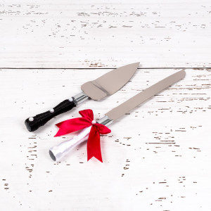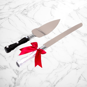 Pentru o nunta romantica in culori puternice, tinerii insuratei pot alege un set tacamuri tort nunta Miri cu fundita bordo si perlute albe, astfel incat momentul in care se taie tortul si se ciocnesc paharele de sampanie sa fie unul cu adevarat special.