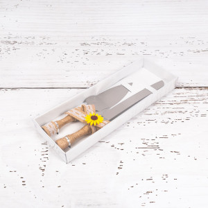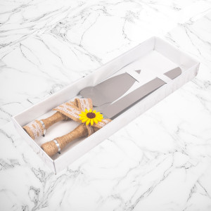 Pentru mirii care prefera accesoriile de tort traditionale, setul de tacamuri Mire si Mireasa cu decor sfoara si floarea-soarelui reprezinta o alegere sugestiva.