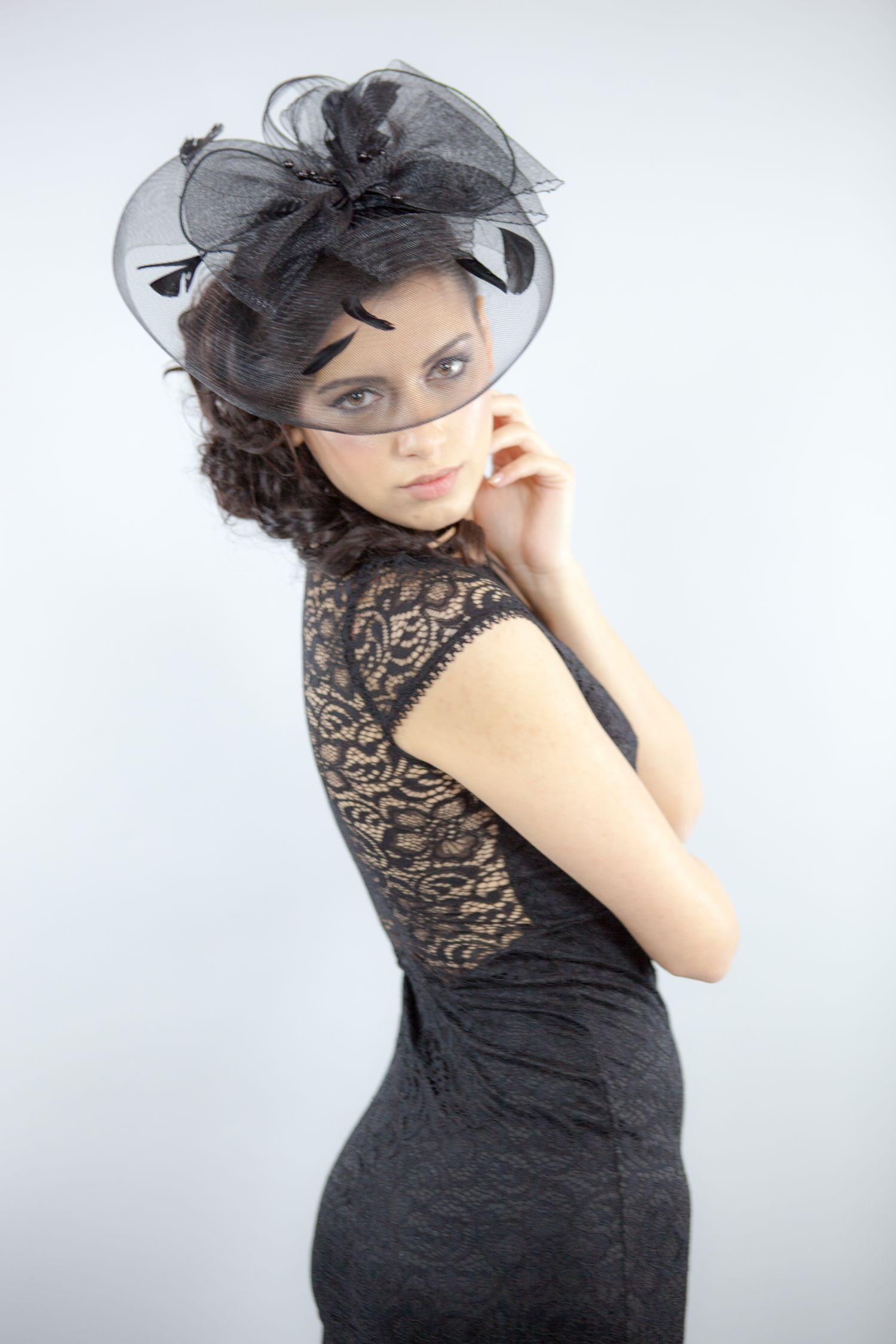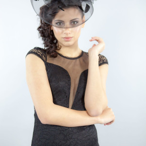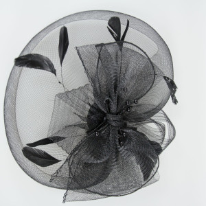 Aceasta voaleta de ocazie neagra este realizata dintr-o tesatura numita Sinamay, originara din Filipine. Acest material ferm este folosit pentru fabricarea accesoriilor de par.