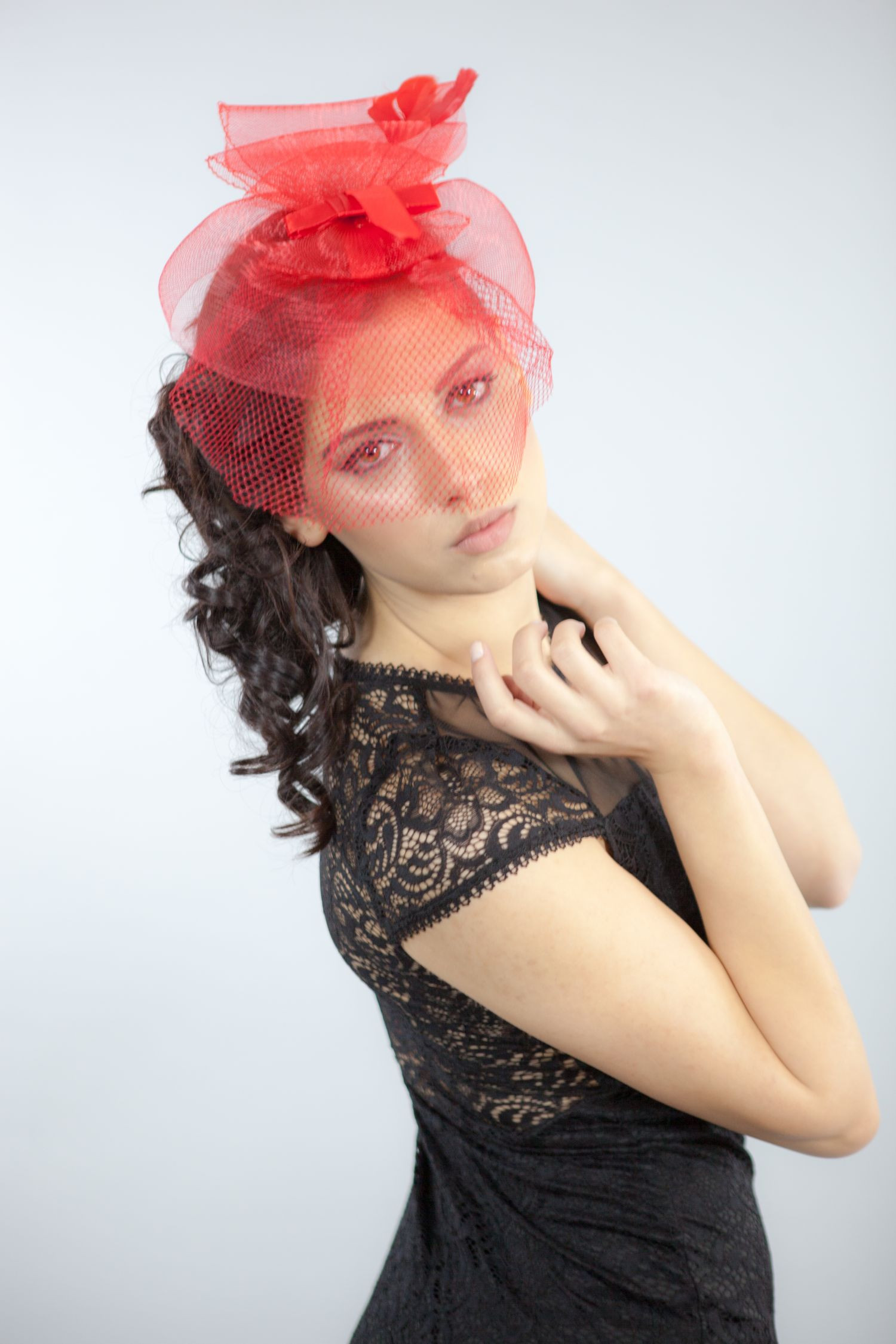 Daca esti o fire nostalgica care adora accesoriile vintage, atunci nu ezita sa iti intregesti outfitul de petrecere cu ajutorul unei voalete de ocazie chic de culoare rosie.
