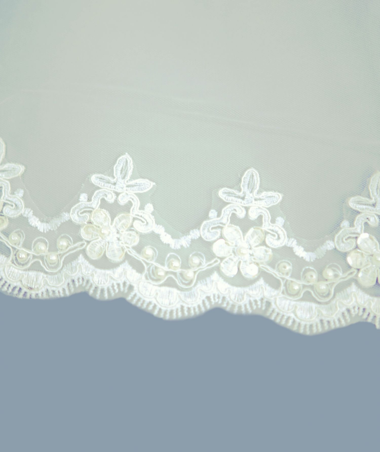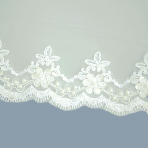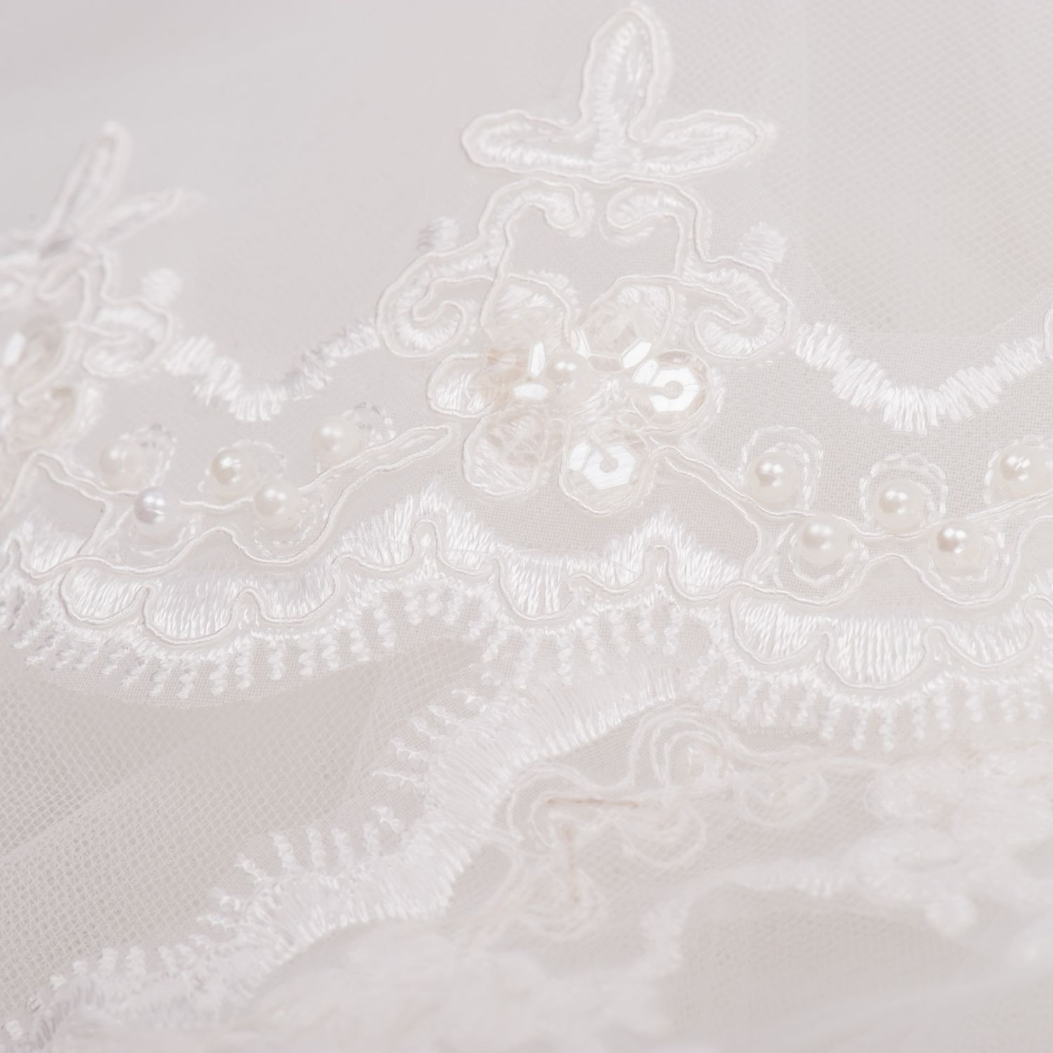 Voal de mireasa spaniol realizat dintr-un strat tulle ivory, accesorizat cu broderie de dantela pe margine.
