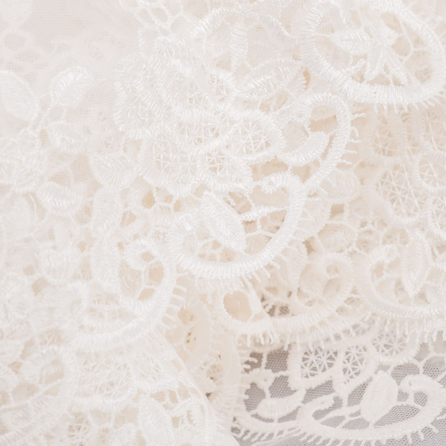 Tip material: tulle ivory, bordura dantela, mici paiete si perlute.